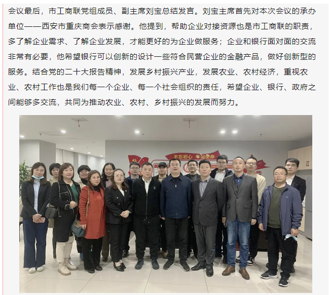 西安市工商联“金融服务助力乡村振兴”项目对接会在我商会召开